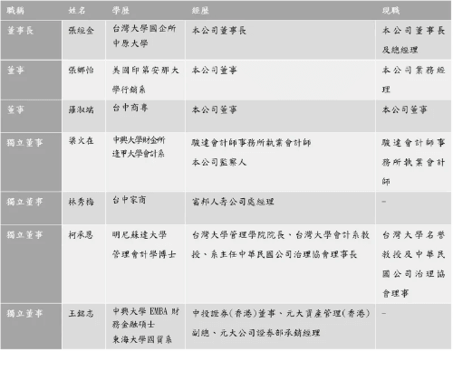 2025年6月6日股東常會全面改選董事,獨立董事由梁火在先生、王銘志先生、柯承恩先生、林秀梅女士擔任,並組成審計委員會,由王銘志獨立董事擔任召集人。